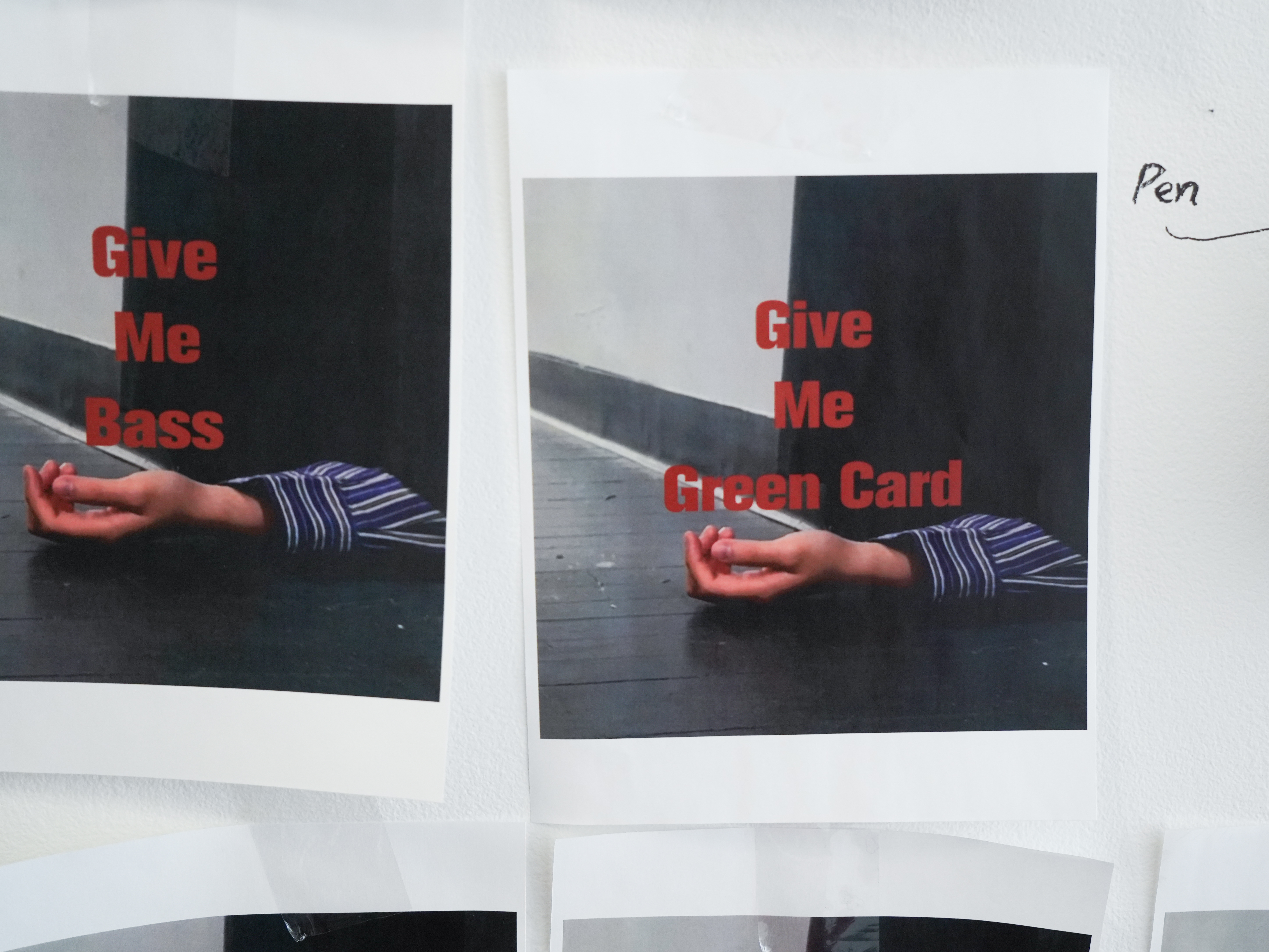 To amplify the gesture, I printed dozens of posters and pinned them outside the studio. Each poster listed desires both mundane and impossible — “I want an exhibition,” “I want work,” “I want money,” “I want 1Q84,” “I want a green card.” As a fallback, I wrote: “If you can’t give me these, give me anything. If you can’t give me anything, give me a hand. Just hold my hand.” The posters were both confessional and performative: they named wants while inviting others to answer them through small acts.